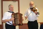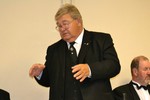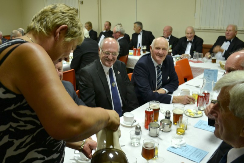 Bro. Joseph A. Kirkpatrick R.W.M. on behalf of the brethren of Lodge Peebles Kilwinning No 24 presents a cheque for £1,000 to Bro. George R.Kelly S.G.M. to be donated to Prostate Scotland.